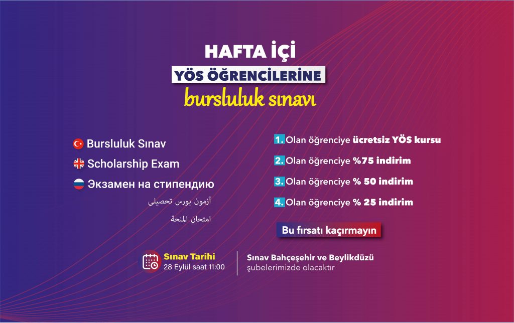 Hafta içi YÖS öğrencilerine bursluluk sınavı